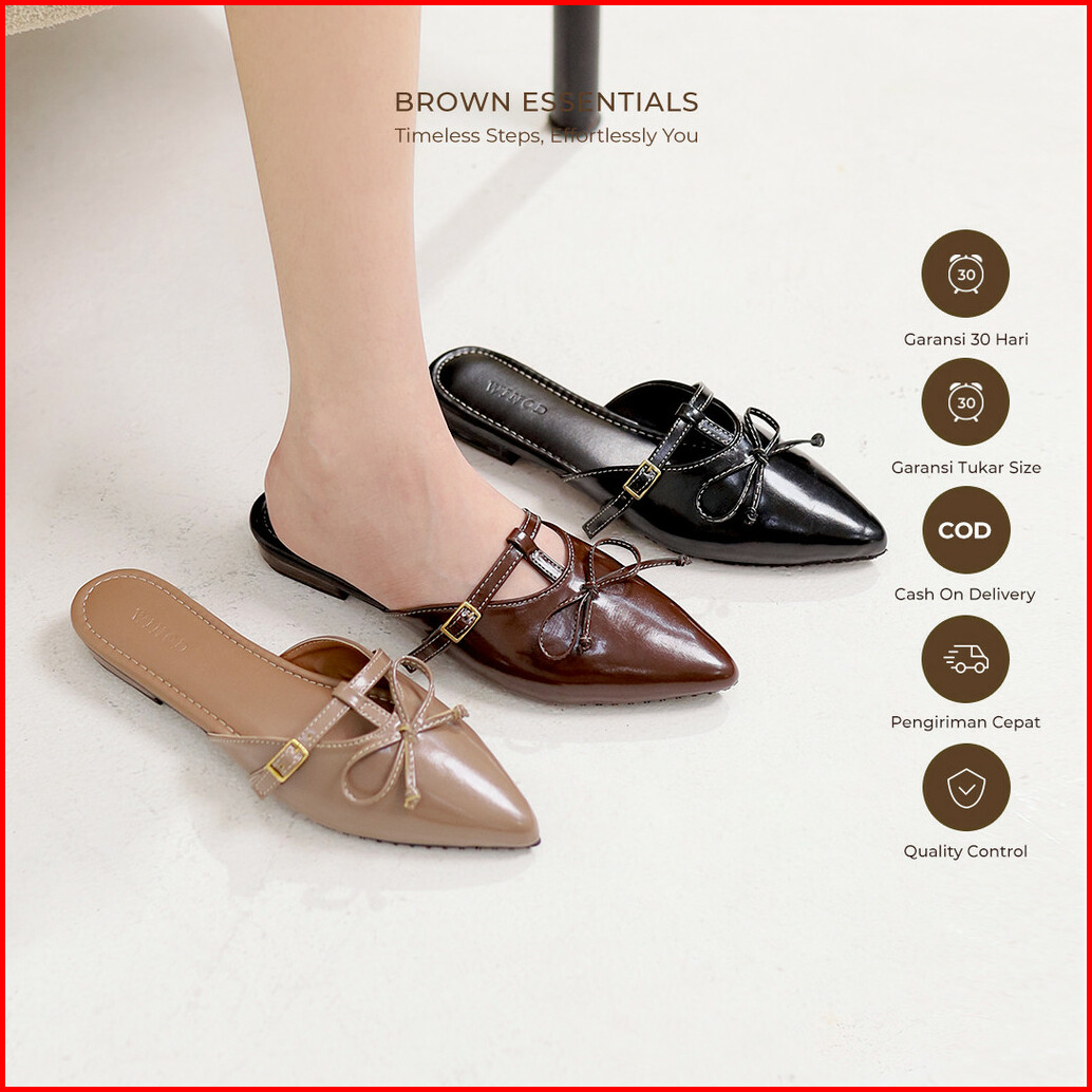 Winod Wilona Mules 2cm Sepatu Slip On Casual Brown Essentials Daily