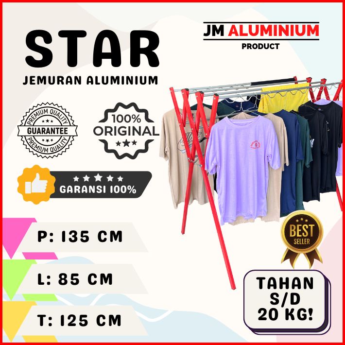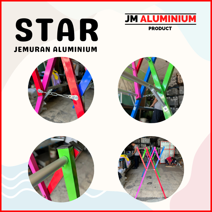 Jemuran Baju Aluminium Rak Handuk Pakaian Star Warna - 135 Cm