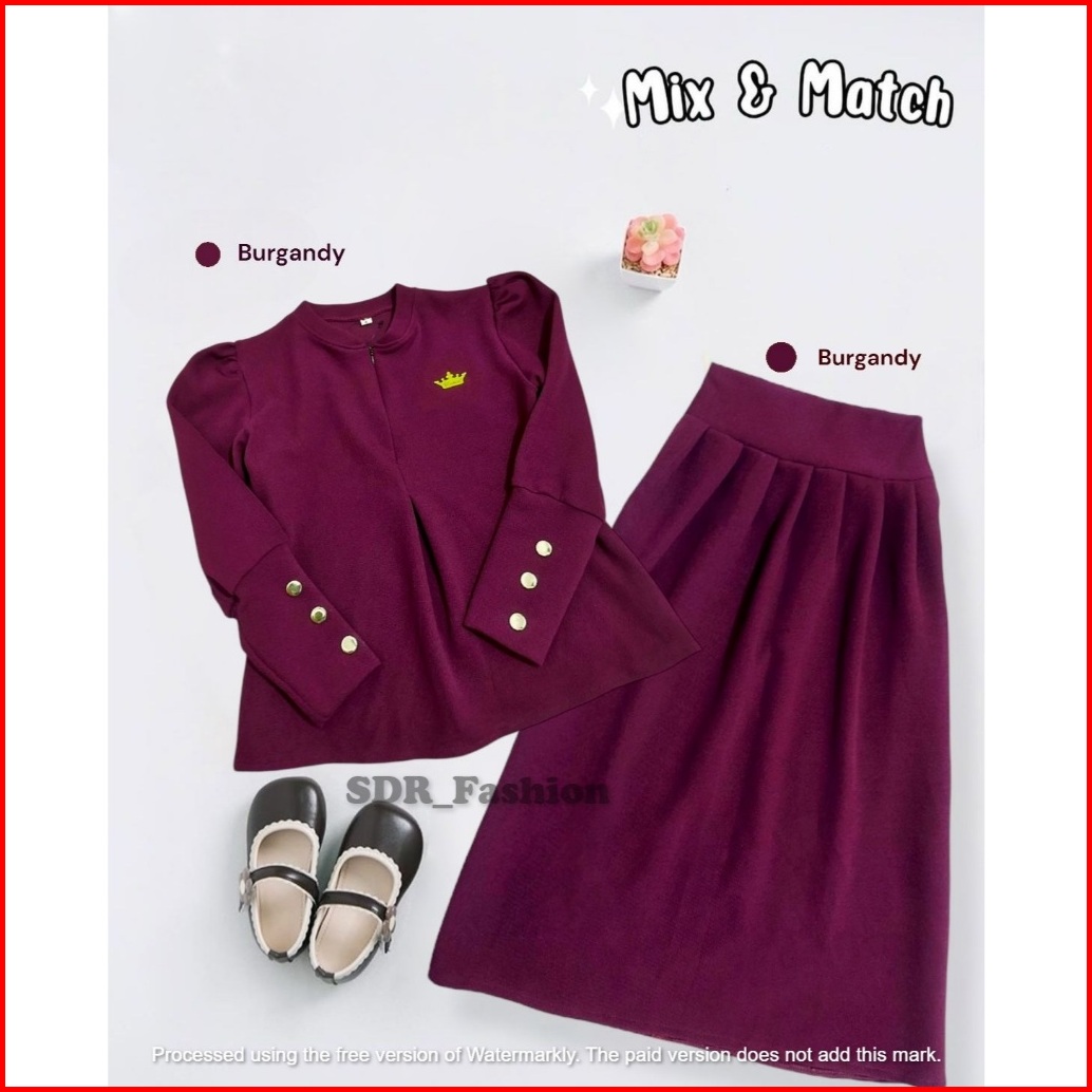 Setelan Rok Inara Terbaru Bahan Japan Linen Dengan Warna Burgundy Yang Viral One Set Anak Usia 1 Sampai 14 Tahun