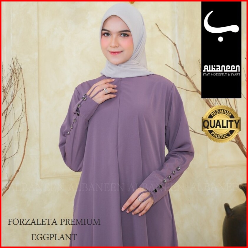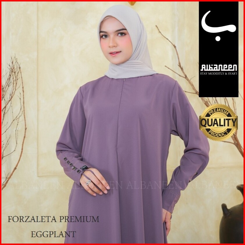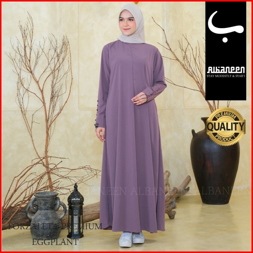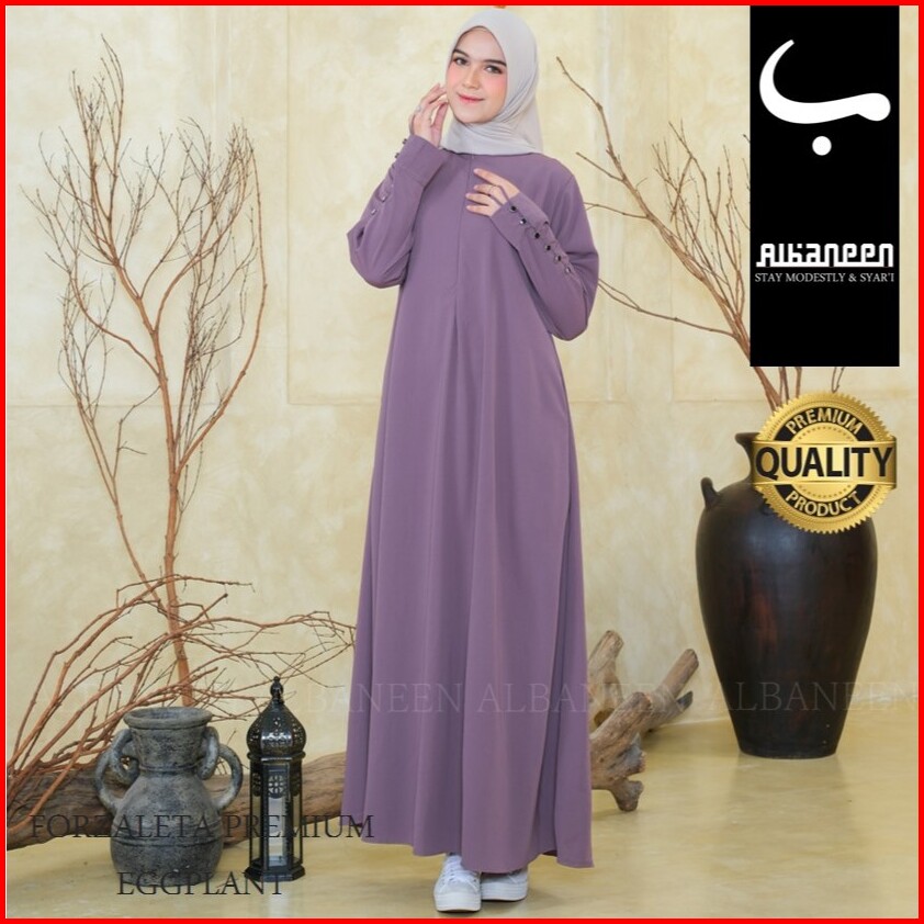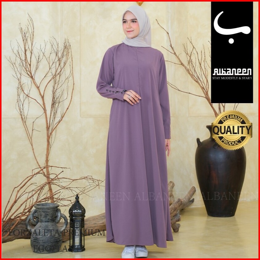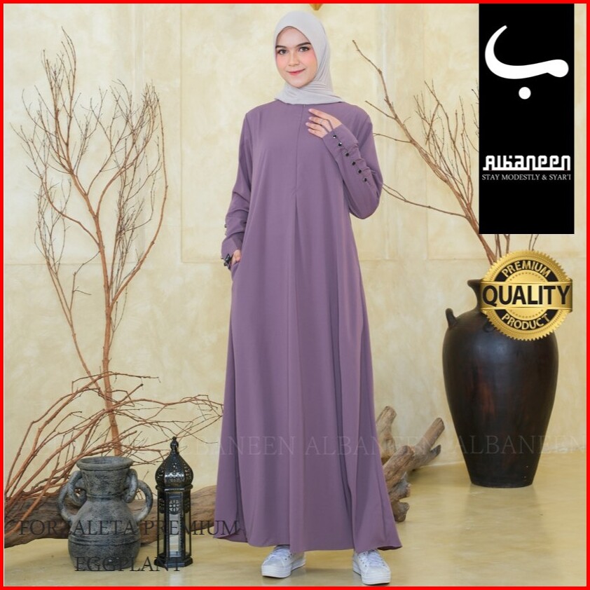 New Albaneen Eggplant Abaya Elegant Gamis Terbaru Albaneen Kancing Tangan Cantik Warna Eggplant 2025