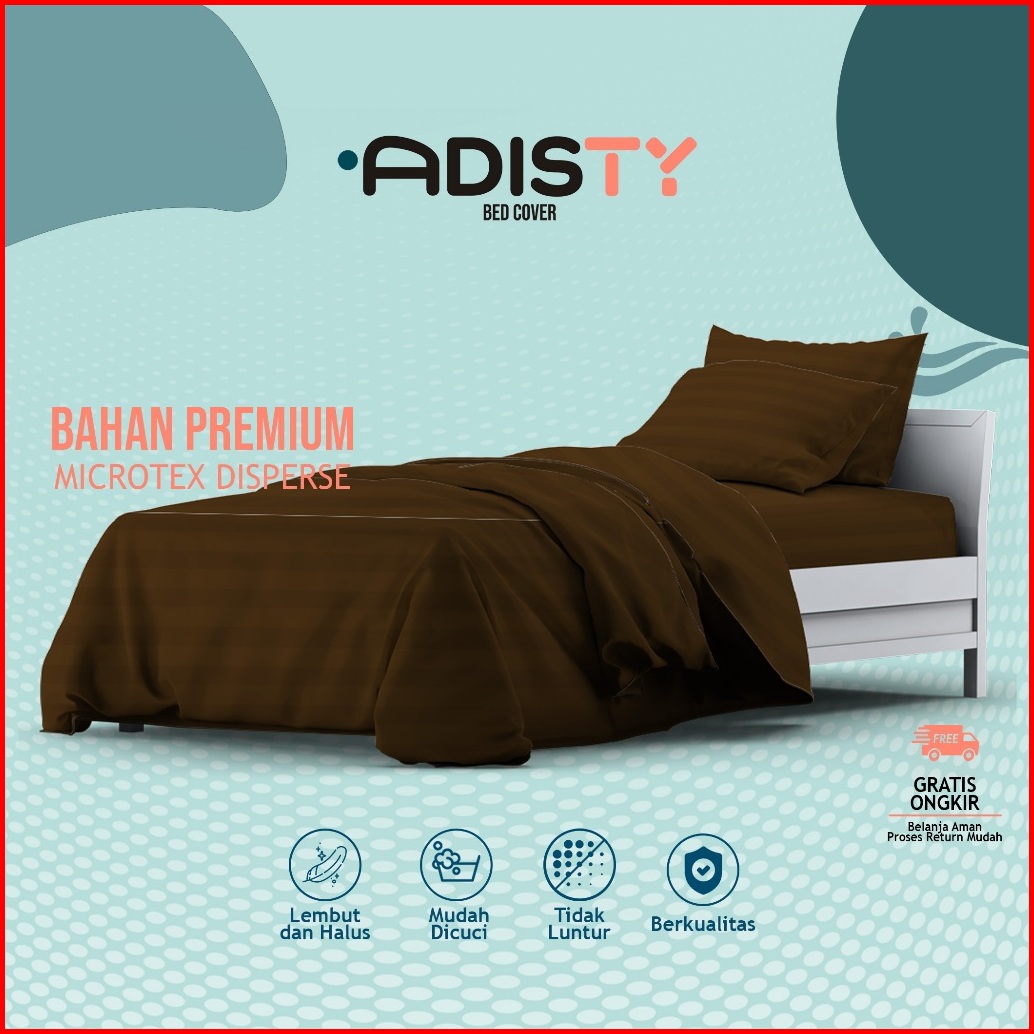 Adisty Bedcover Set Motif Polos Salur Coklat Tua Termurah Kualitas Premium Lembut Bedcover Hotel