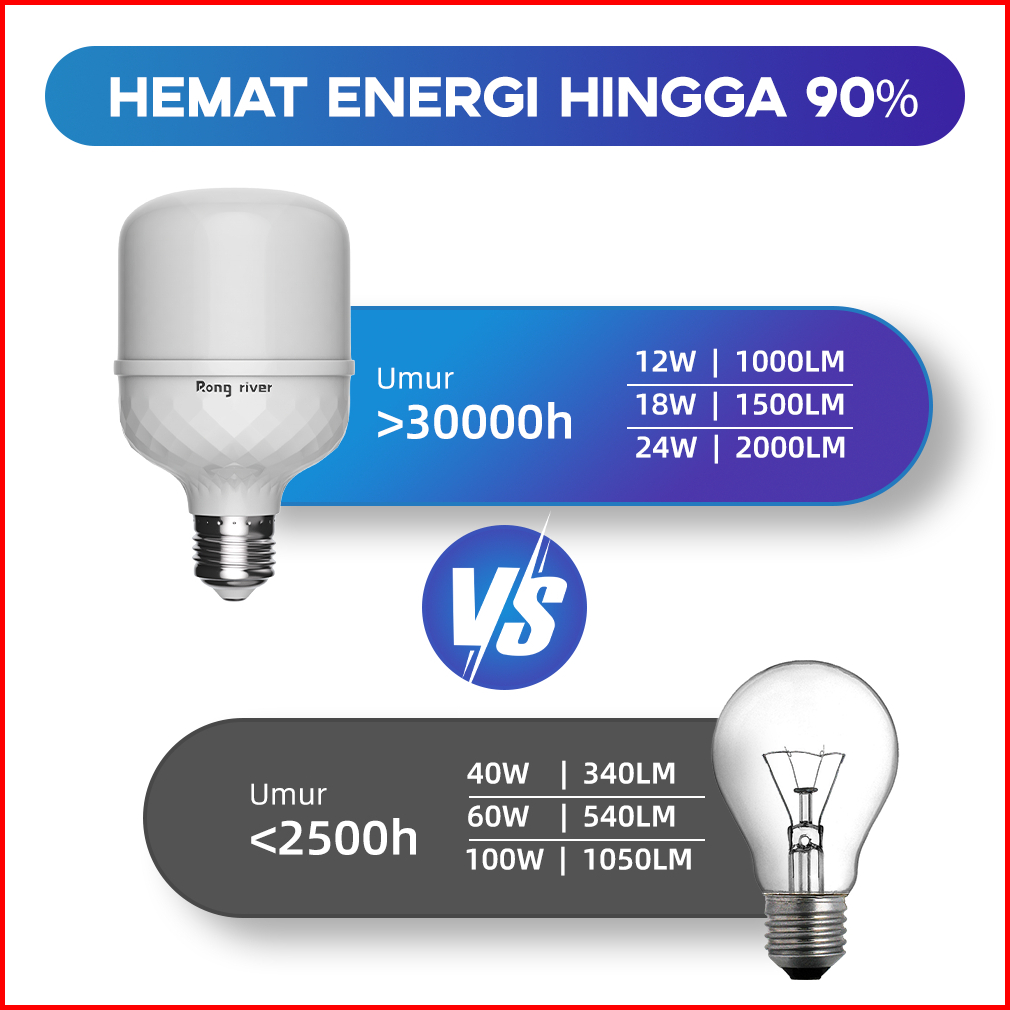 Rong River 3buah 24w 18w 12w Lampu Led Bohlam Cahaya Putih 6500k Bohlam Led