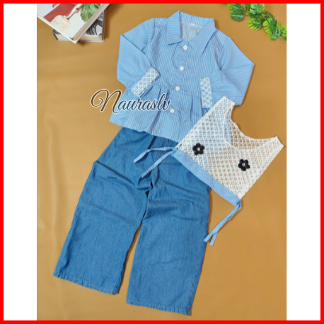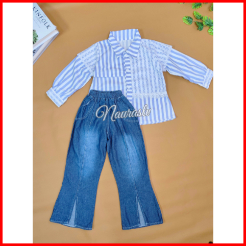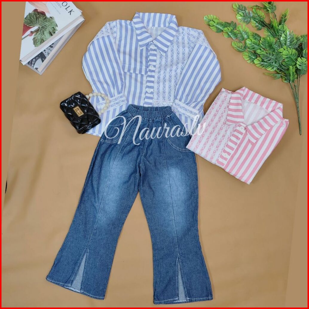Baju Setelan Kemeja Anak Perempuan Salur Celana Cutbray Usia 3-12 Tahun