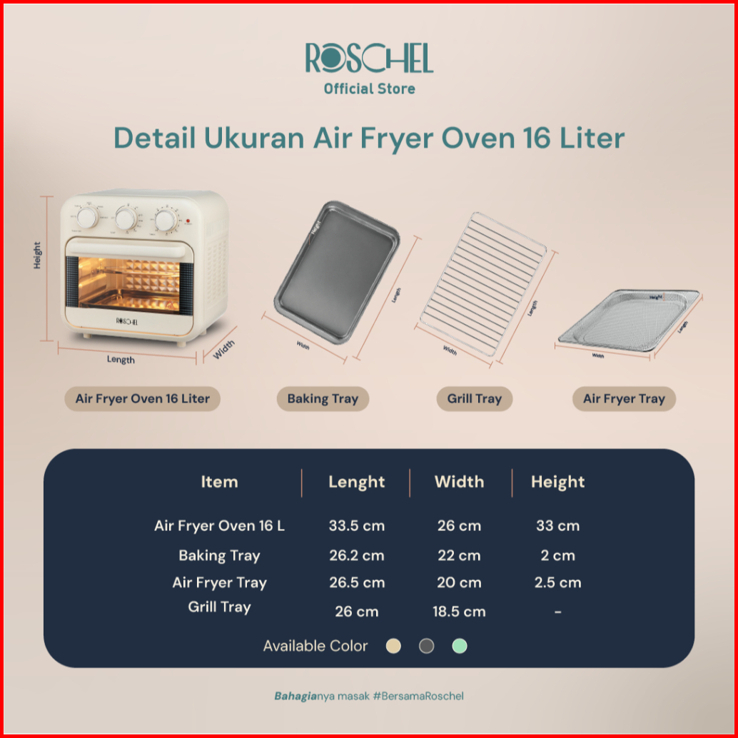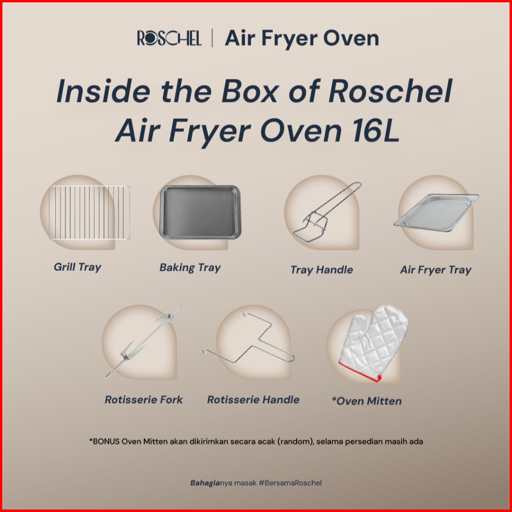 Roschel Air Fryer Oven With Rotisserie 16 Liter 5in1 With Dehydrator Penggoreng Tanpa Minyak Pemanggang Stay On Function