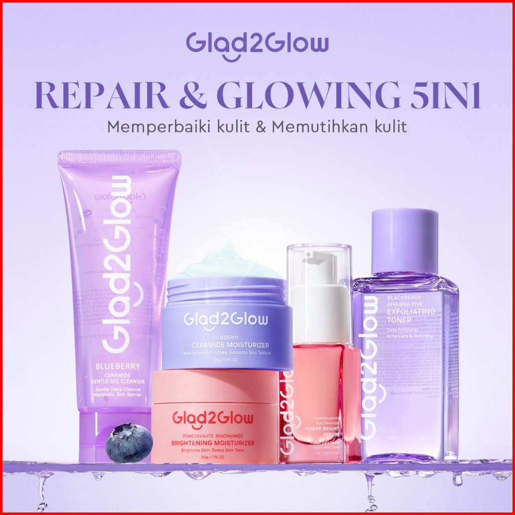 Diskon 10 Sekarang Glad2glow Pulih Tenang Bundle All In 1 Pulih Sunburn - 2 3 4 5 Pcs Blueberry Moisturizer Blueberry Ce