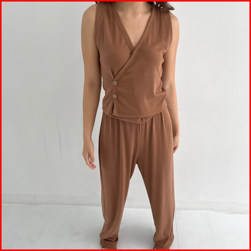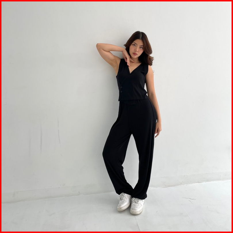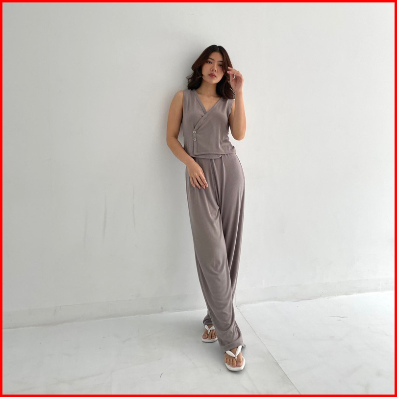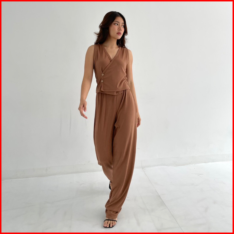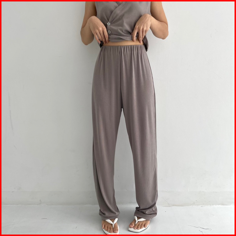 Milan Set Setelan Wanita Ribbed Knit Vest Set Celana Panjang Highwaist Highwaisted Pants Rompi Wanita Set
