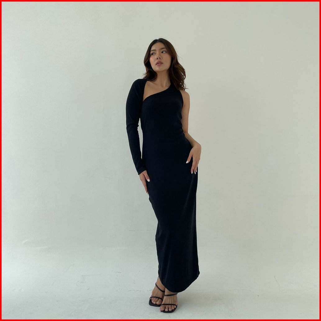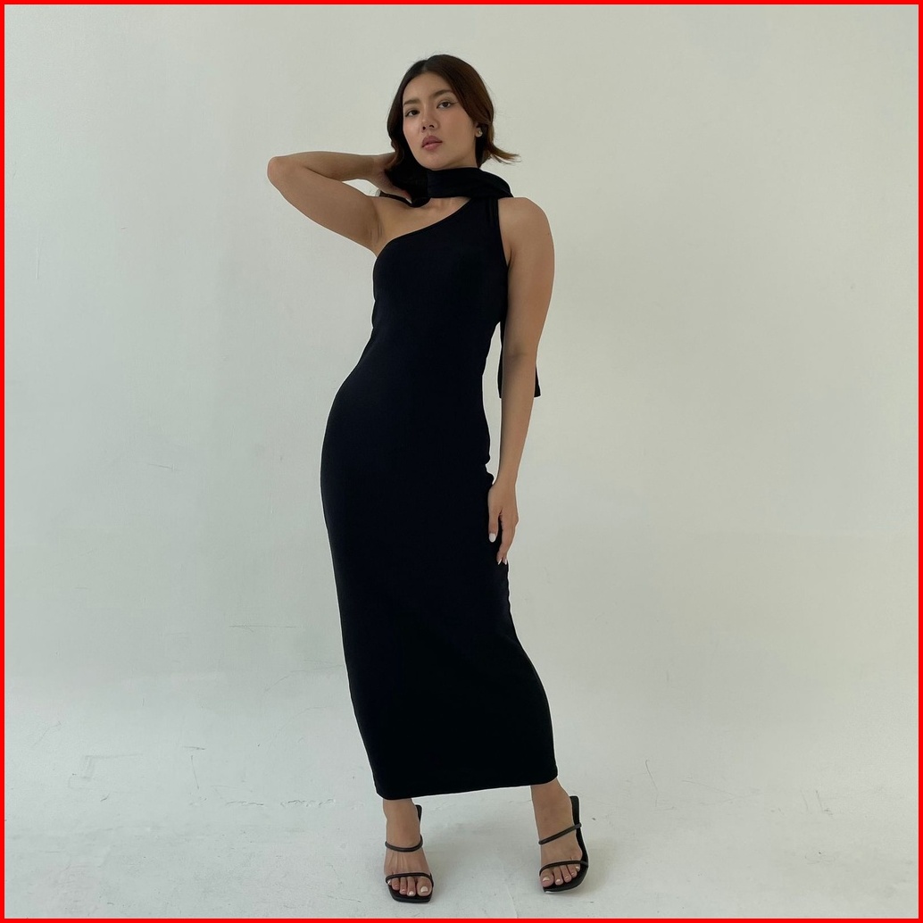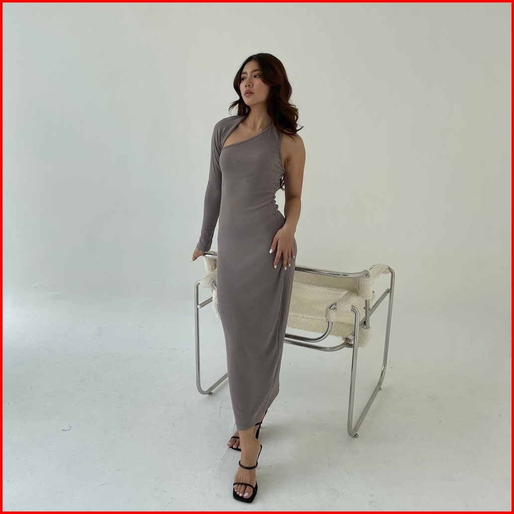 Saturday Dress Dress Panjang Wanita Rib Knit Assymetric Terusan One Shoulder Korean Tank Aesthetic Long Dress Two Way