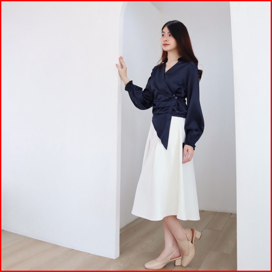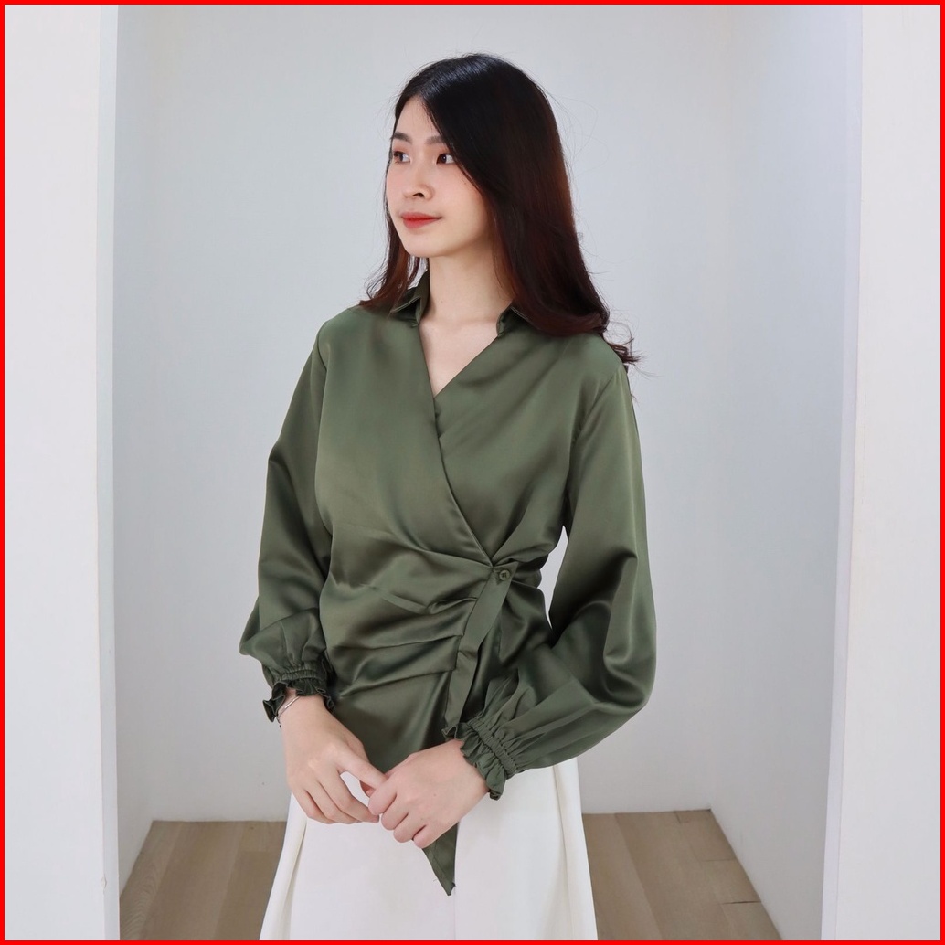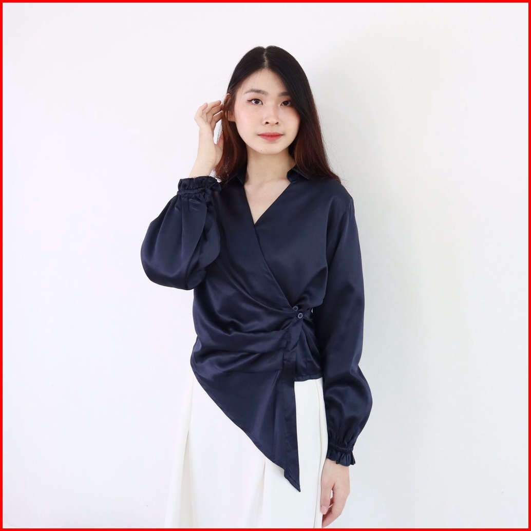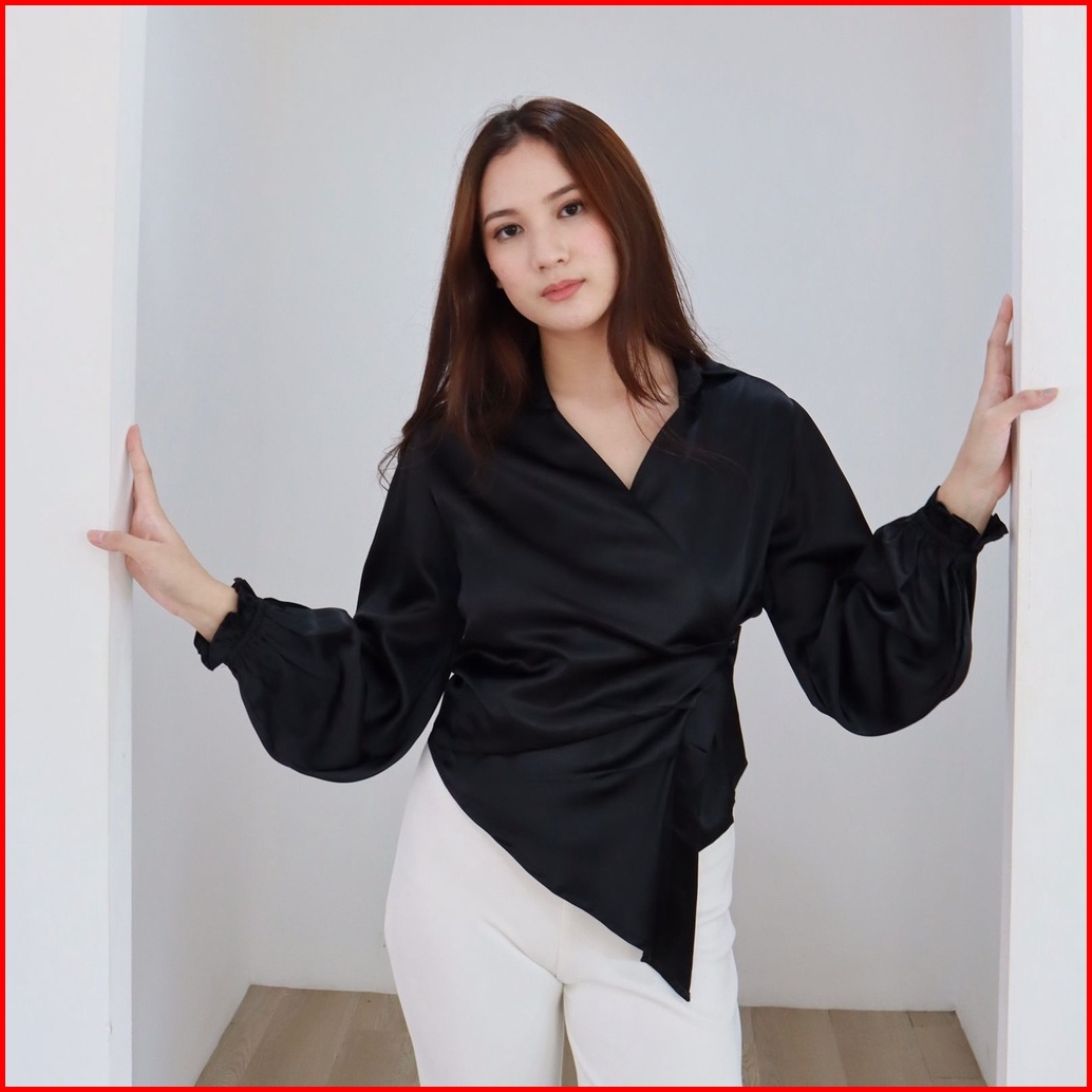 Msmo Lily Longsleeve Top Blouse Wanita Atasan Wanita Outfit Kantor Blouse Satin Silk Blouse