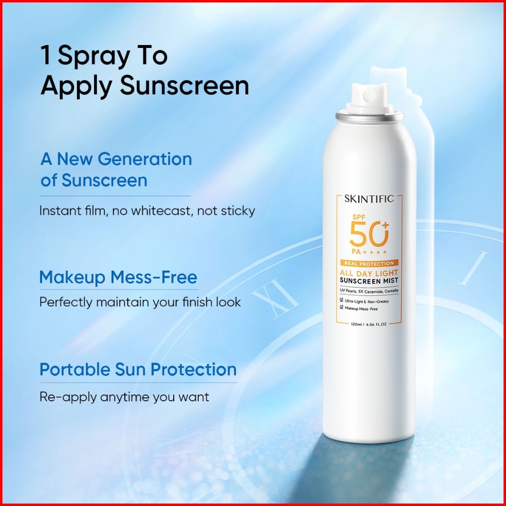Skintific All Day Light Sunscreen Spray Spf50 Pa Reapply Sunscreen Mist Anti Uv Uva Uvb