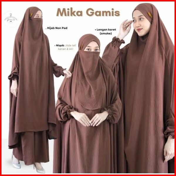 Medina Umrah Haji Set Abaya Long French Khimar Crinkle Airflow