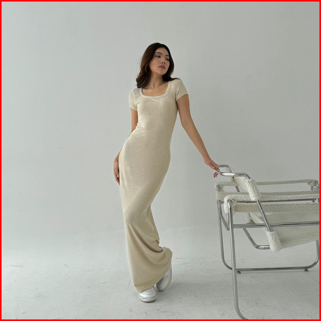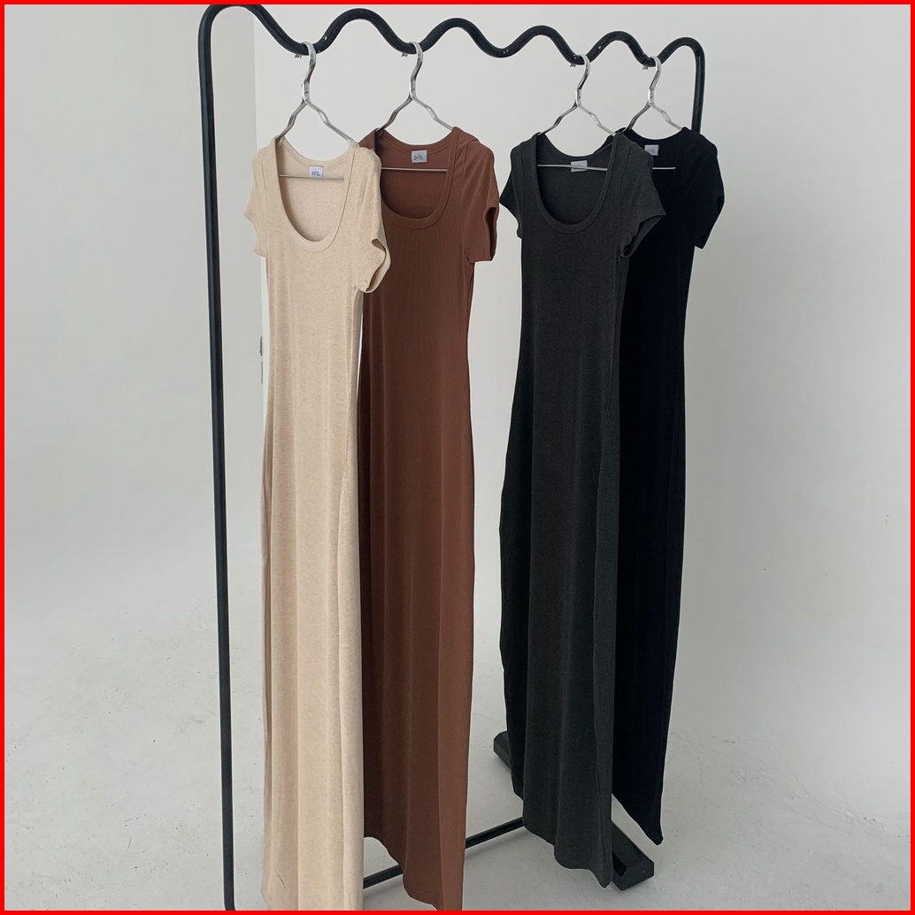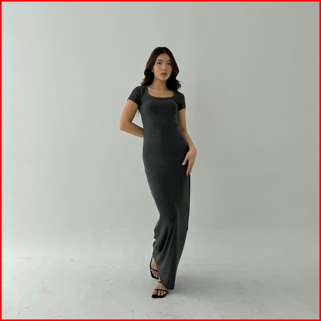 Aquarius Dress Basic Dress Panjang Wanita Rib Knit Basic Terusan Maxi Dress Korean Basic Long Dress