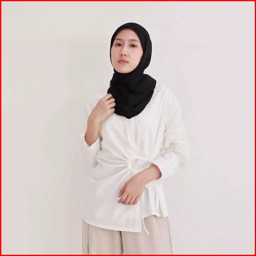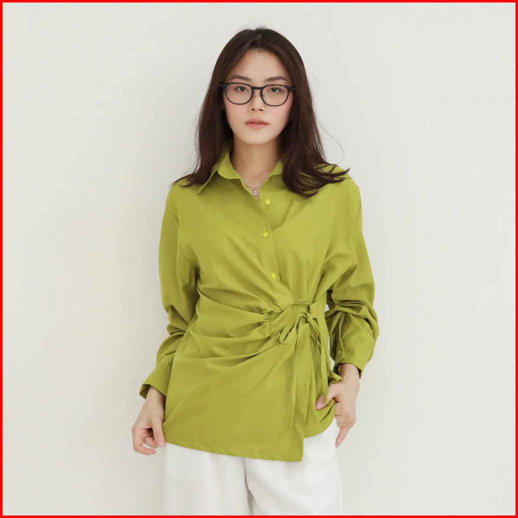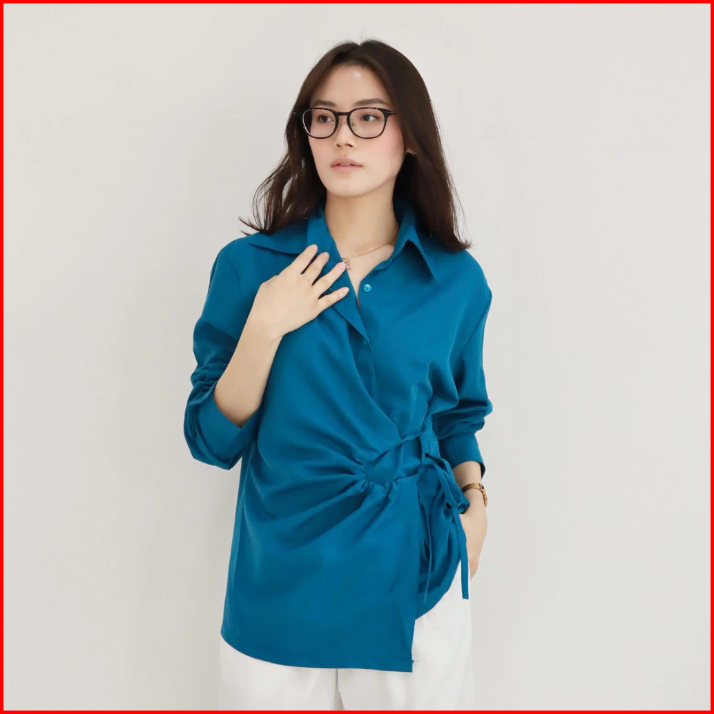 Exclusive Msmo Karis Assymetrical Shirt Blouse Wanita Basic Kemeja Wanita Casual Brown Grey
