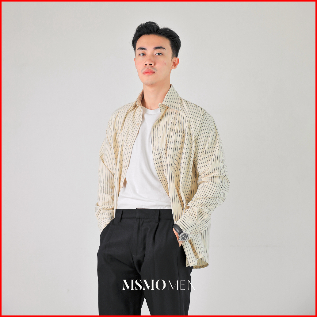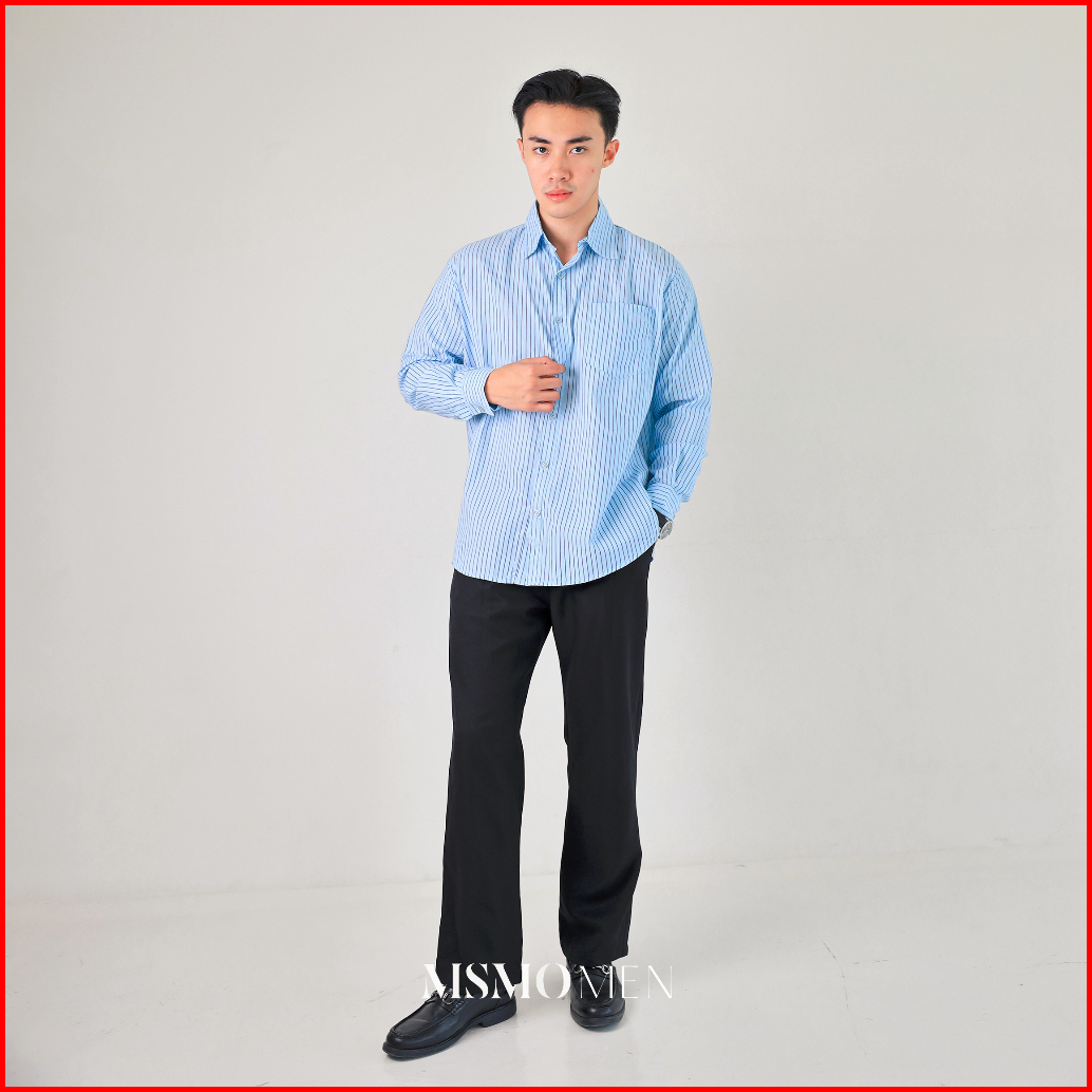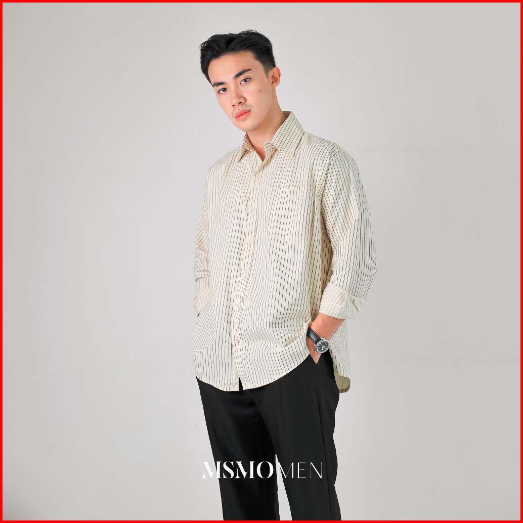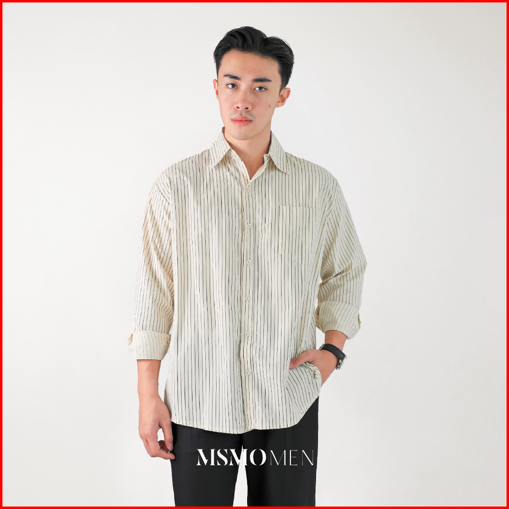 Msmo Men Reitz Stripes Shirt Kemeja Stripes Pria Kemeja Kantor Kemeja Salur Kemeja Stripe