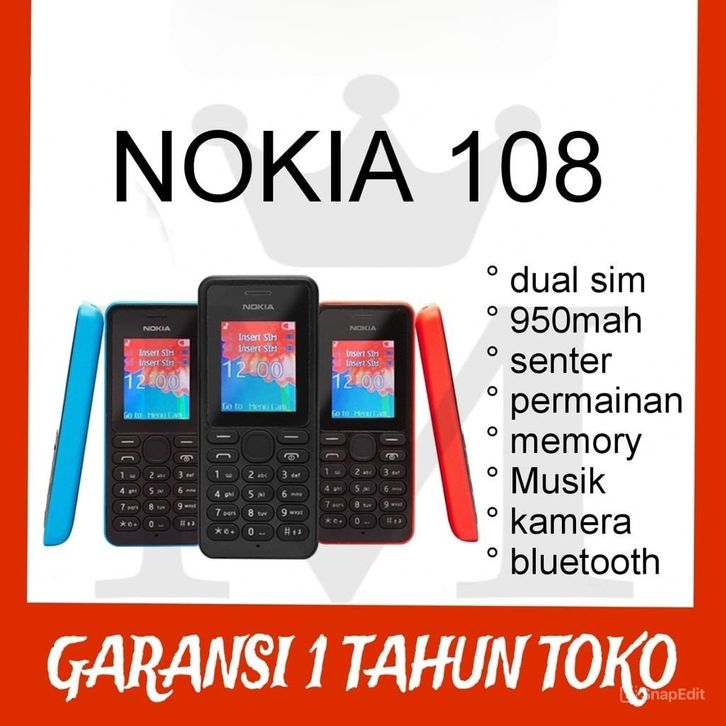 HP NOKIA JADUL 108 BARU [GARANSI 1 TAHUN] Kamera - Radio Musik Bluetooth- Dual SIM - MURAH Memori Micro SD