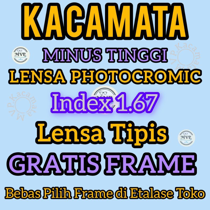 PAKET KACAMATA MINUS TINGGI LENSA TIPIS INDEX 1.67 LENSA PHOTOCROMIC GRATIS FRAME bebas pilih Frame