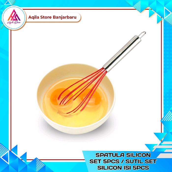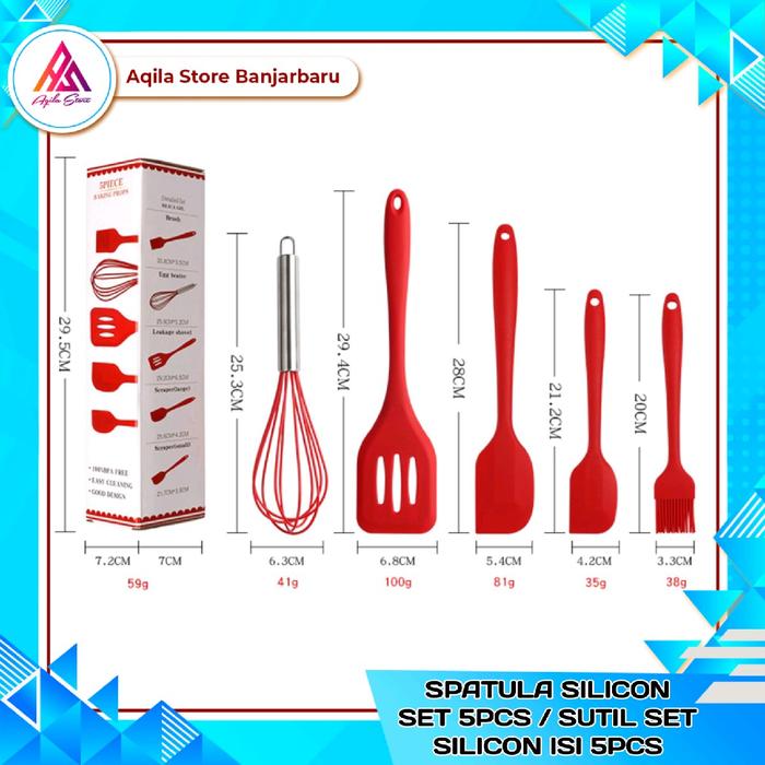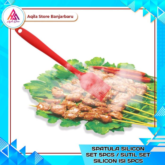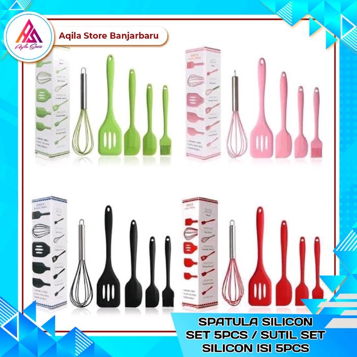 Murah Spatula Silicon Set 5pcs / Sutil Set Silicon / Spatula Set 5pcs Peralatan Masak Dapur Silicon Warna - Pink Keren