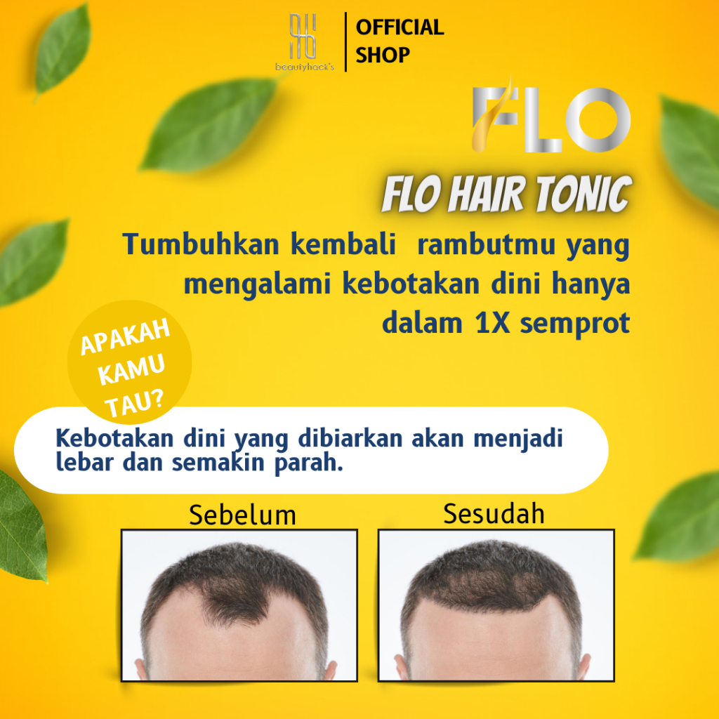FLO Hair Tonic Penumbuh Rambut Kebotakan Dini Original Beautyhacks Resmi BPOM Serum Vitamin Rambut
