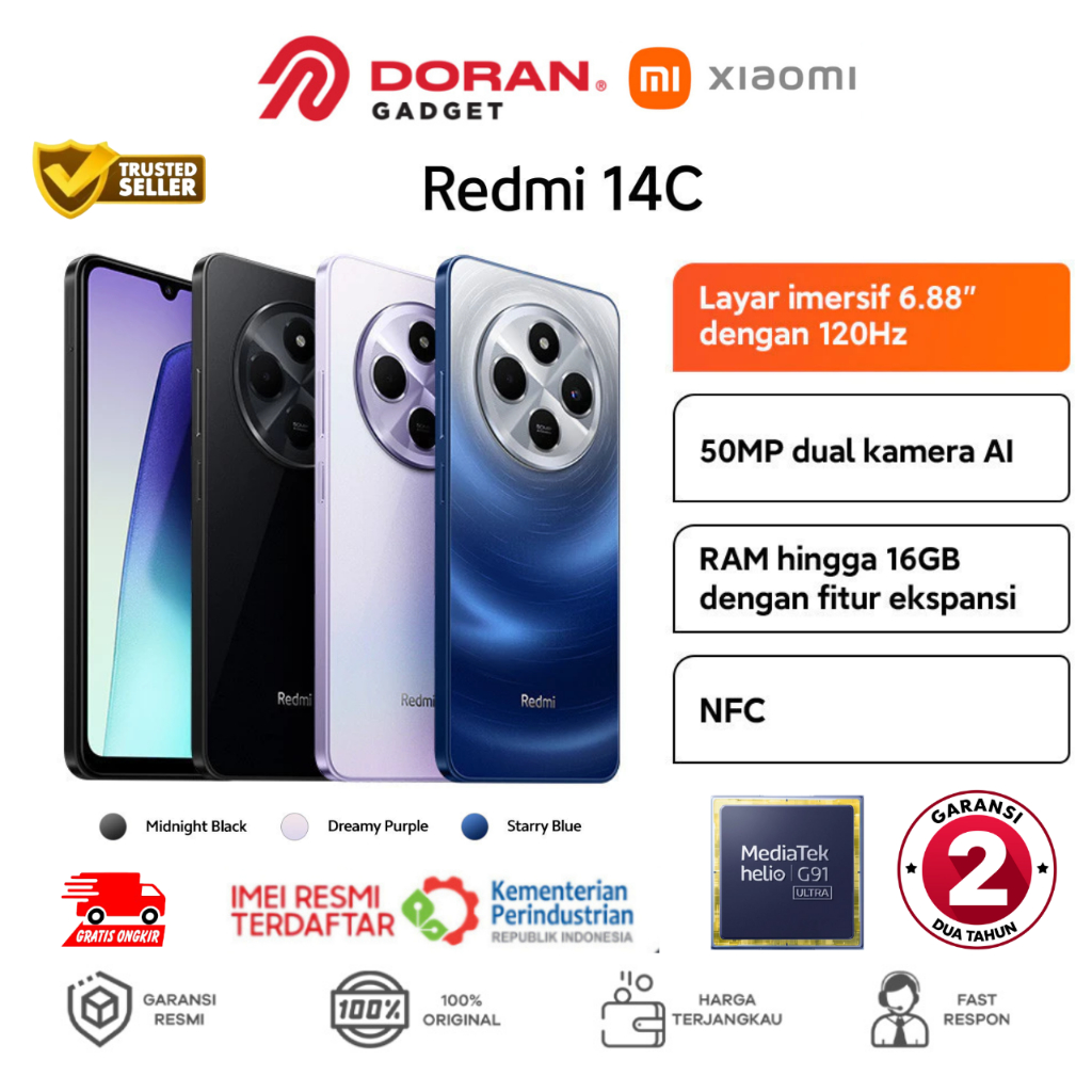 Xiaomi Redmi 14C 6/128GB 8/256GB RAM 6GB 8GB ROM 128GB 256GB - Garansi Resmi 1 Tahun