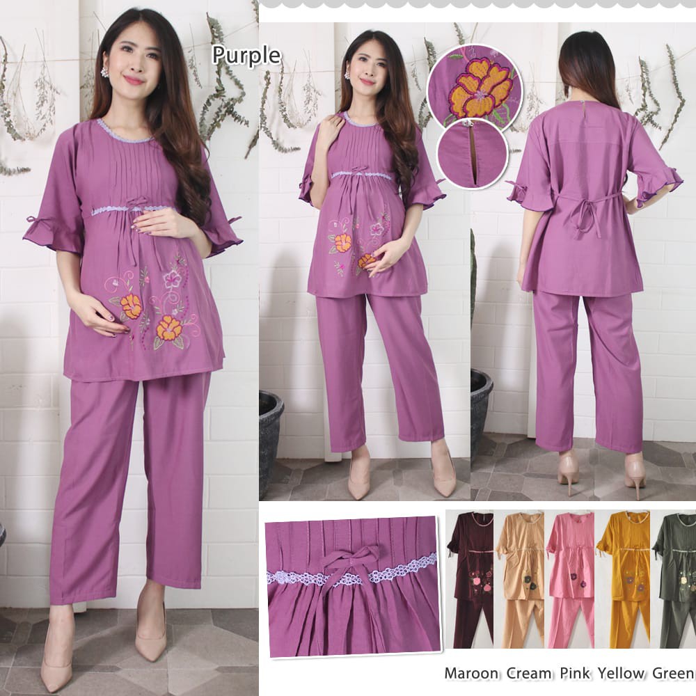 Baju Stelan Ibu Hamil Baju Stelan Ibu Menyusui Resleting Kanan Kiri Stelan CP Hamil Baju Tidur Hamil