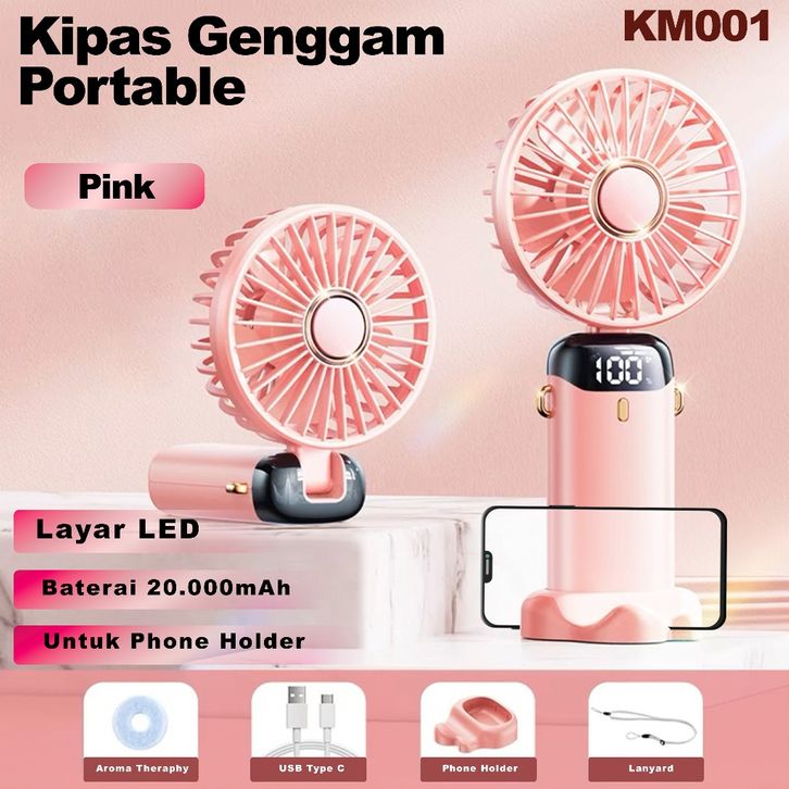 Kipas Mini Fan Portable LED Battery Display 20000mAh Kipas Genggam Handheld Fan KM001