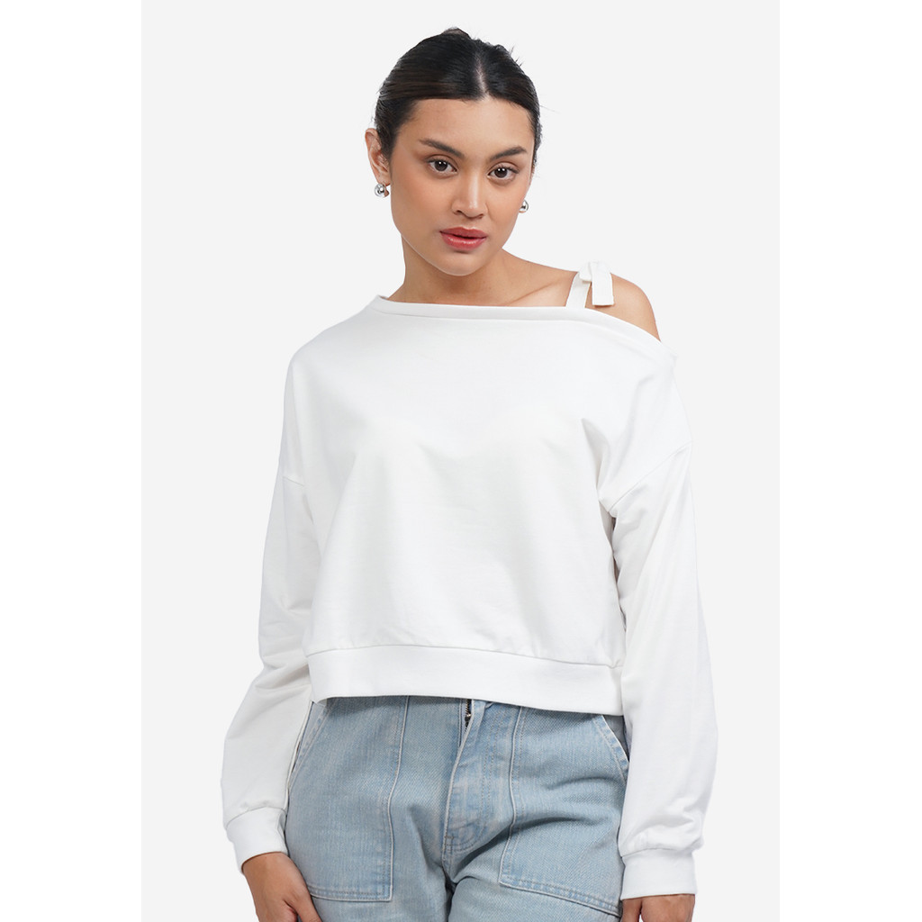 COLORBOX Strap Off Shoulder Sweatshirt Off White