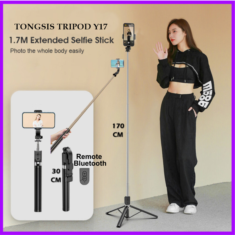 Y17 Tongsis Selfie Tri 1.7 Meter 170 CM Remote Bluetooth 3 In 1 Stick Portable Flexible Selfie Stick 360º