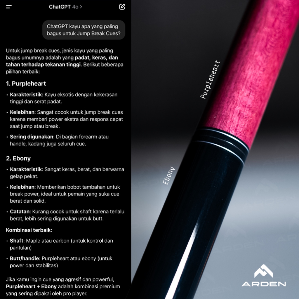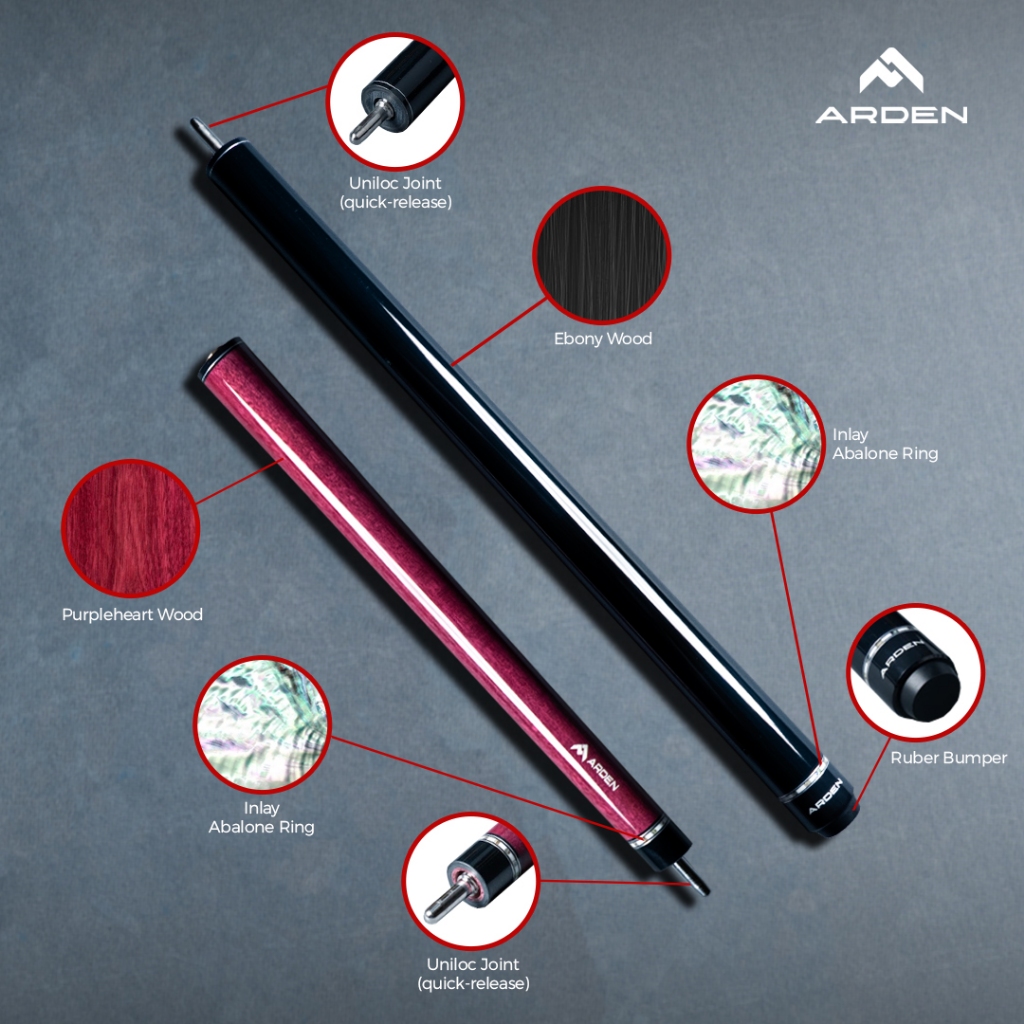 ARDEN JUMP BREAK CUE [BAKU] PURPLEHEART & EBONY WOOD BILLIARD STICK STIK BILIARD INLAY