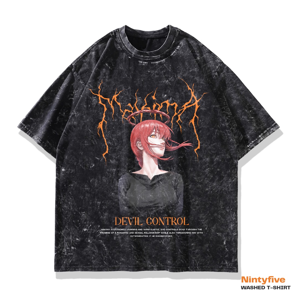 Shirt Chainsaw Man Makima Devil Control Washed Oversize | Kaos Baju Anime Oversized Sand Wash