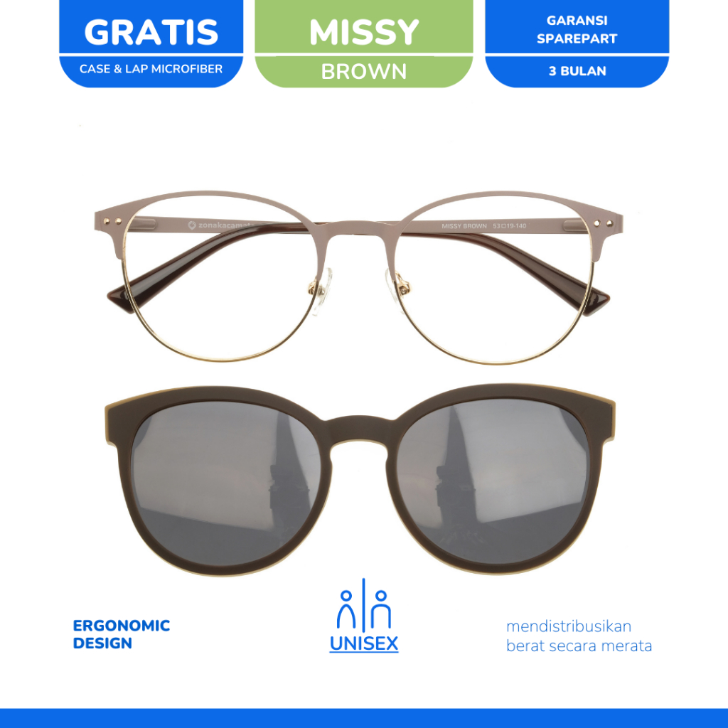 zonakacamata - Clip On Missy Brown - Frame Kacamata - Pria/Wanita - Minus/Silinder/Plus