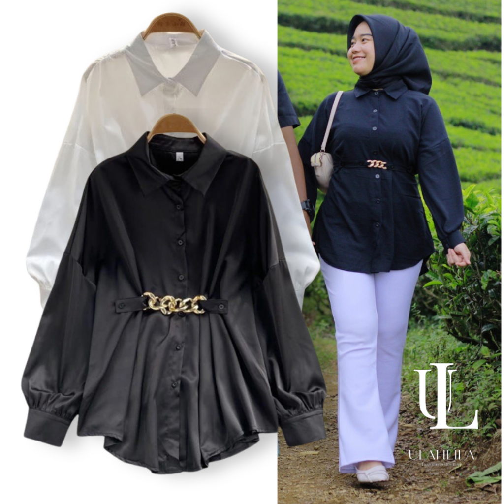 Ulahlila - Kemeja Melda Blouse Atasan Wanita Polos Panjang Rantai Tali Bahan Cringkel Airflow