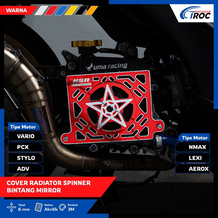 COVER RADIATOR SPINER BINTANG MIRROR VARIO PCX NMAX AEROX ADV LEXI STYLO Tutup Radiator Spinner Bintang