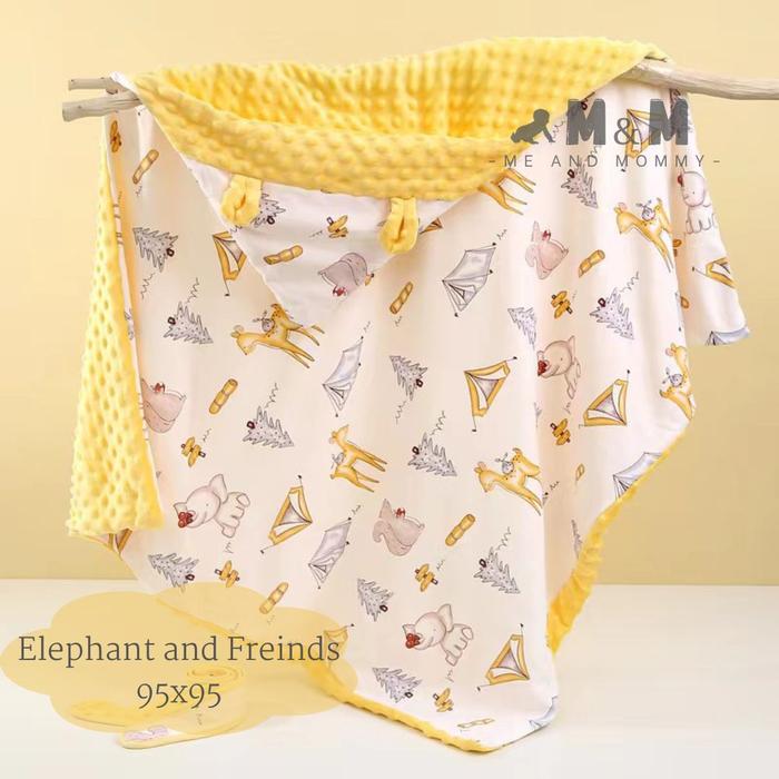 Selimut Baby Blanket Minky Beludru Hoodie Dot Topi Karakter Newborn Lembut Nyaman Bayi Anak Kualitas Premium 95X95cm