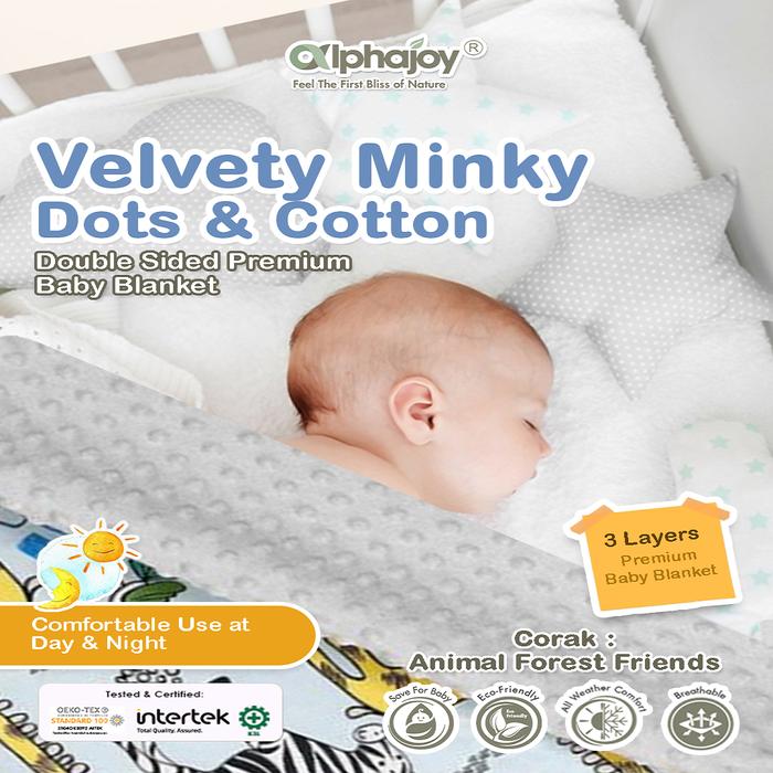 Selimut Alphajoy Velvety Minky Dots & Cotton Double Sided Baby Blanket