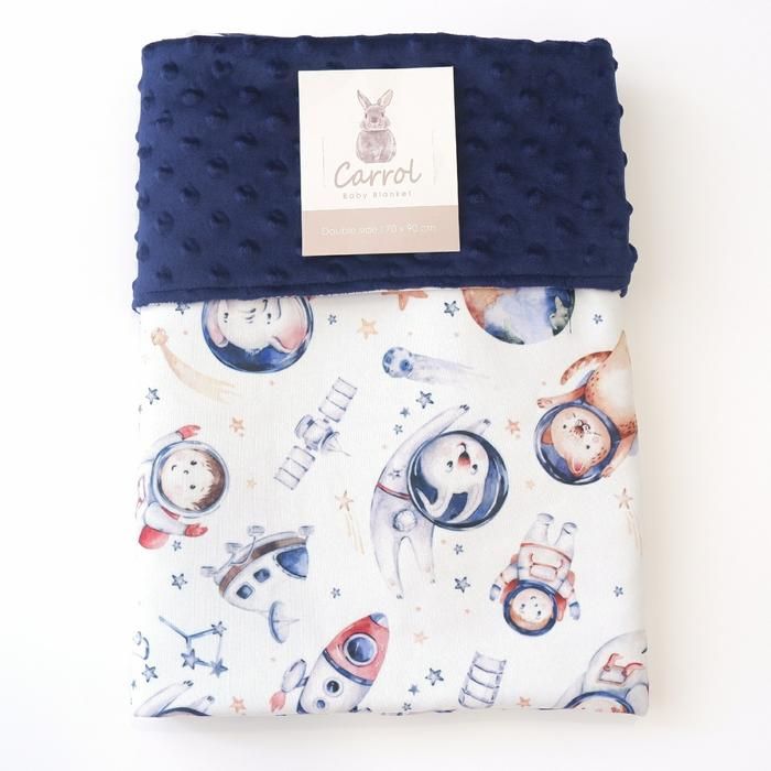 Carroo Baby Blanket Astronaut Animals - Minky Navy