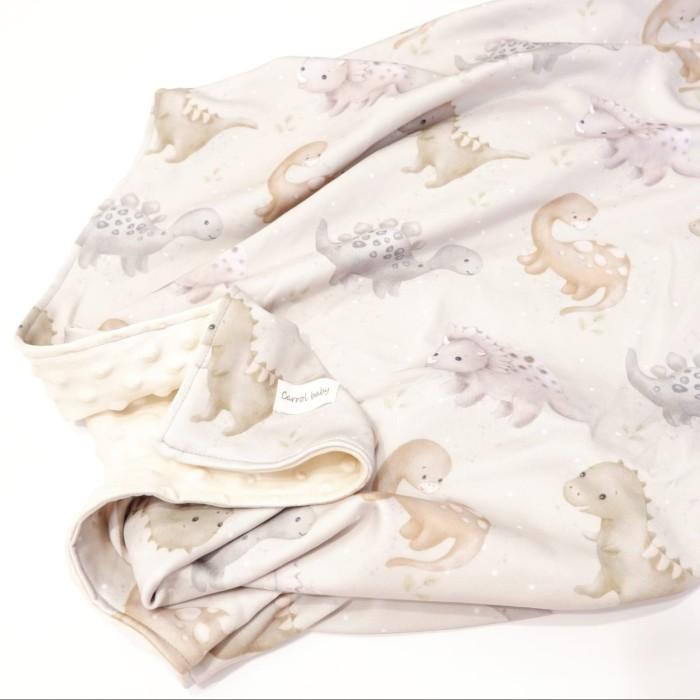Carrol Baby Blanket Dino Island Green - Dino Blanket - Minky Pale Nude