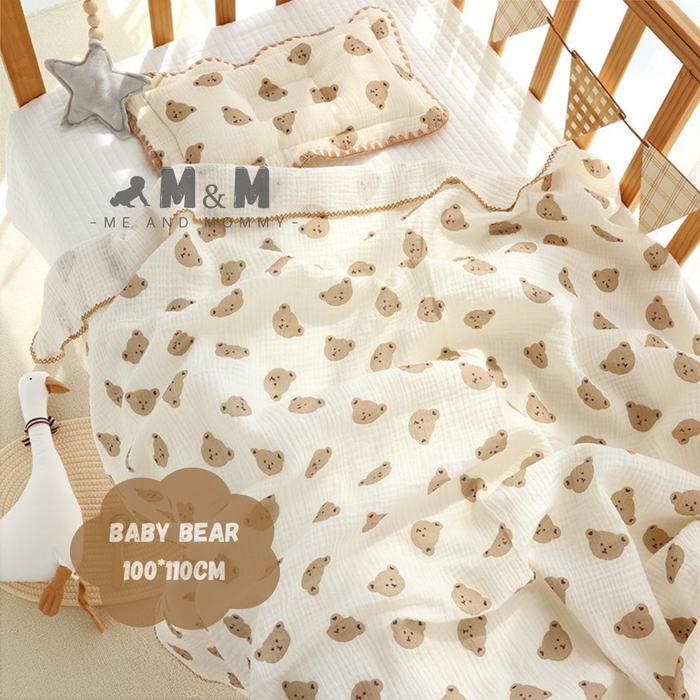Selimut Baby Cotton Blanket Muslin Bayi Korea Lembut Halus Newborn Multifungsi Karakter Premium Quality 100x110cm