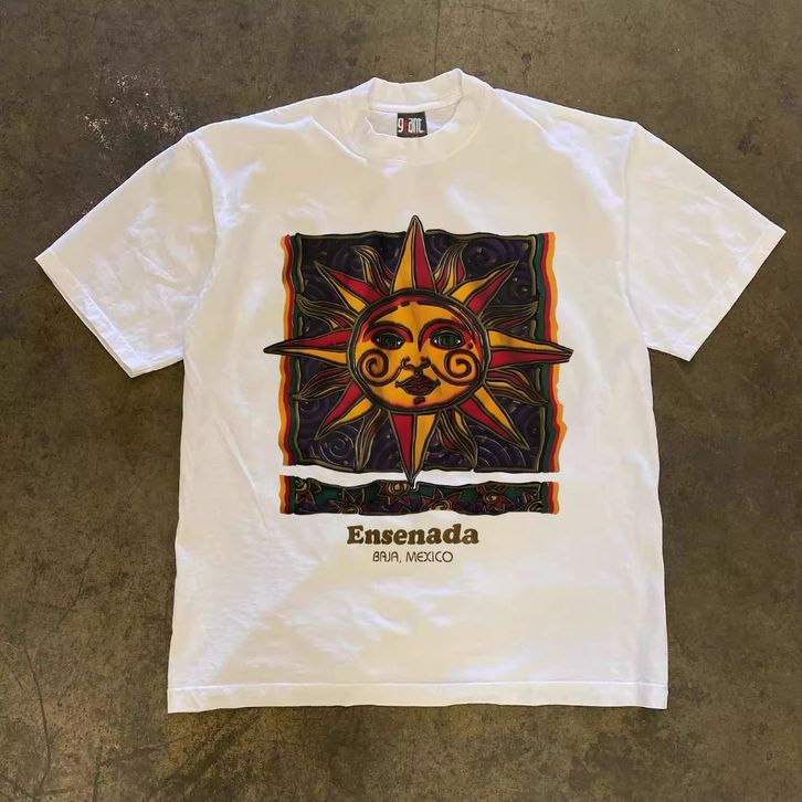 JJ.STORE American retro Style T-shirt Oversize Sun God | Kaos Wanita Putih | Metallica Kaos pria dan wanita