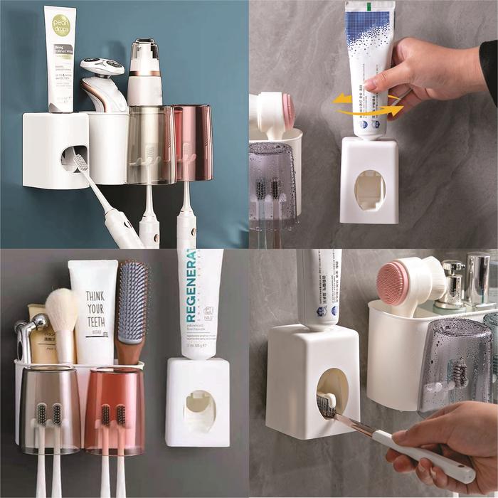 Dispenser odol dan sikat gigi Premium Tempat odol Pasta gigi dan gelas model baru Elegant Dewasa Anak