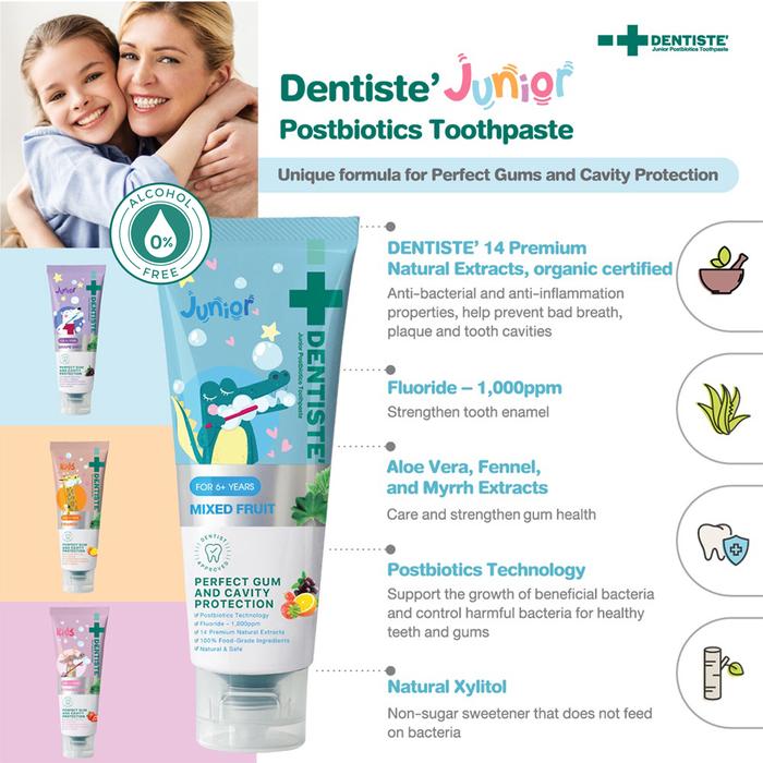 (6+ Years) DENTISTE Postbiotics Junior Toothpaste Mixed Fruits 60gr / Pasta Gigi Anak Premium