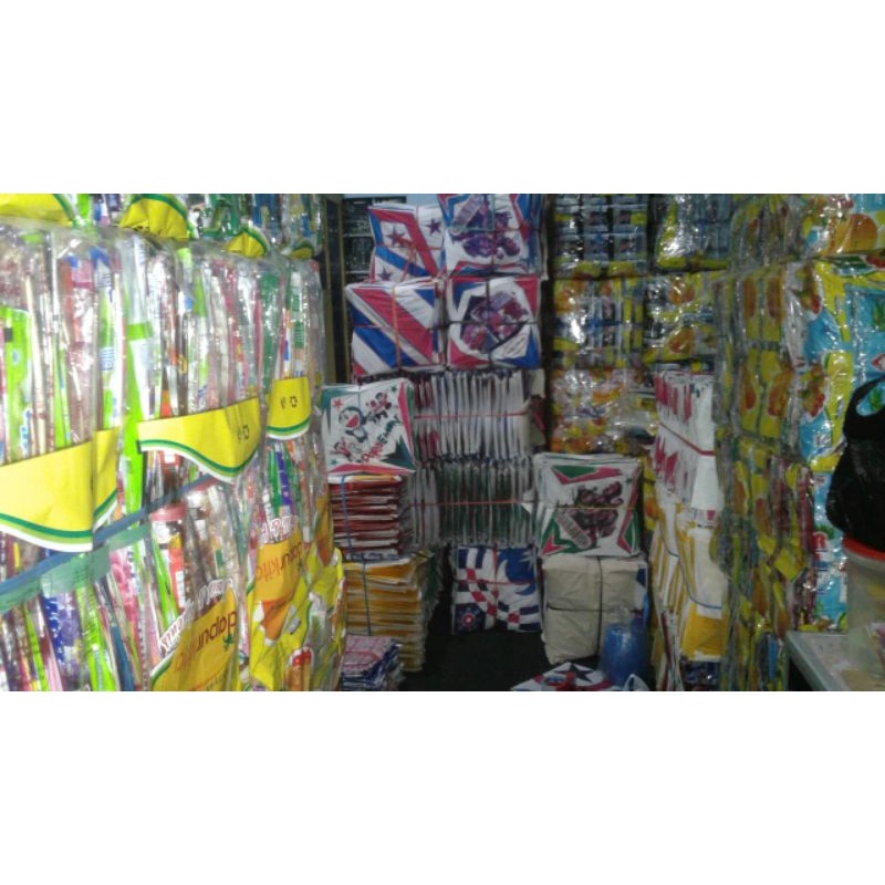 layangan plastik/kertas sablon/merah putih/kuning putih/ hijau putih , polos/pulas , ( isi 50 pcs layang layang sortiran bagus)