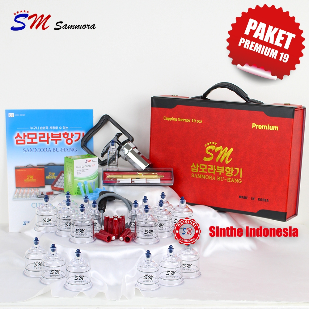 Paket Alat Bekam Sammora Premium 19 Kop + Lancing Device Gold SM-228 + Blood Lancets 21G SM