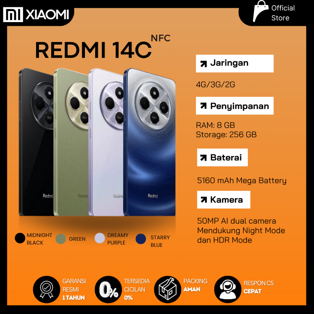 XIAOMI REDMI 14C 8GB/256GB LAYAR 6.88" REFRESH RATE 120Hz 50MP DUAL KAMERA AI