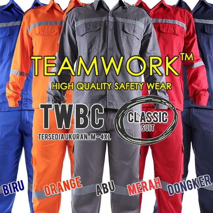 TWBC TeamWork Setelan Baju Celana Seragam Kerja Bengkel Katun Dongker