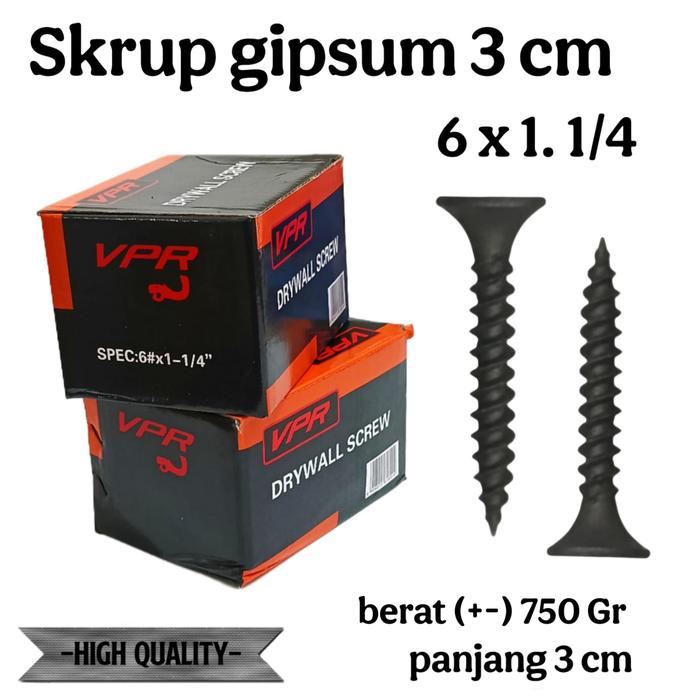 READY! SKRUP / SEKRUP GYPSUM HITAM / GIPSUM - PER DUS - 6 X 3/4"