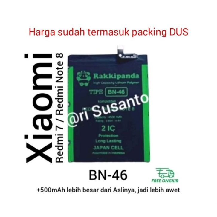 Baterai Rakkipanda BN46 for XIAOMI REDMI 7 / REDMI NOTE 8 Double Power 4500mAh batere batre batrai battery