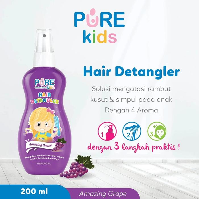 Terlaris PURE Kids Spray Pelembut Rambut Anak | Hair Detangler Pure Baby Hair Lotion - 200ml - PK-Hair Stroberi Elegan