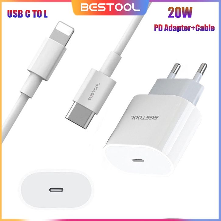 BESTOOL Charger PD 20W 2.4A Fast Charging Adaptor QC3.0 Type-C Lightning Adapter untuk Iphone 11 12