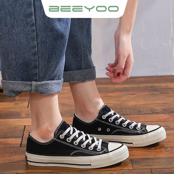 Promo Beeyoo Sepatu Sneakers Kanvas Tali Cewek Kets Sepatu Sekolah Formal Wanita Shoes Warior Hitam Aerin WK201 Keren