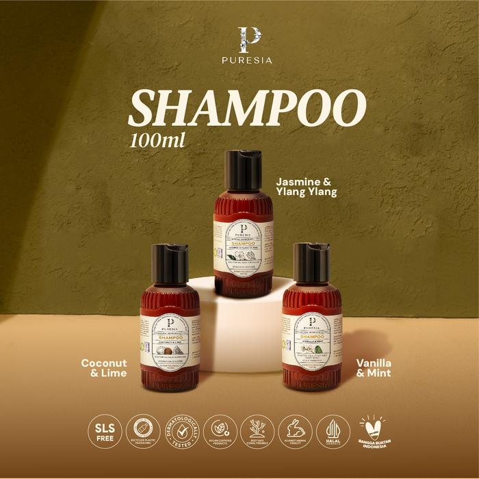 Puresia | Non SLS Shampoo 400ml / 100ml | Perawatan Rambut Rontok / Berketombe / Kering