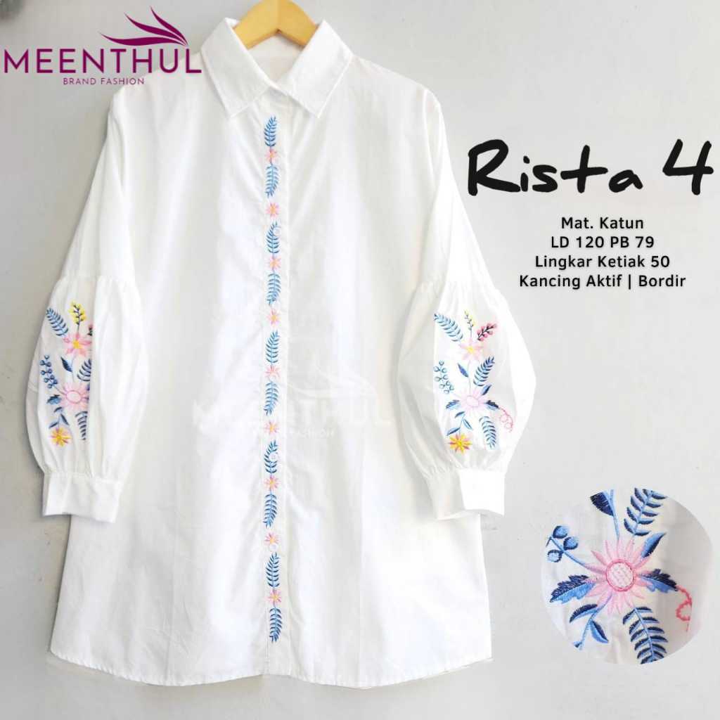 TUNIK KEMEJA JUMBO PUTIH WANITA BORDIR BUNGA LENGAN BALON KATUN PREMIUM - RISTA MEENTHUL.ID